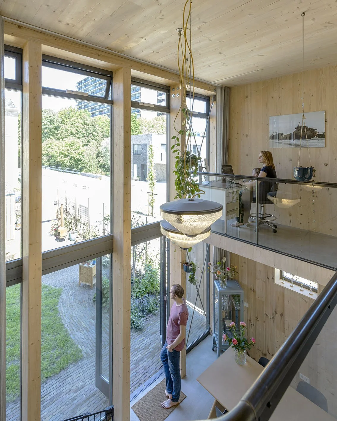 Een aantal jaar geleden starte ik met het ontwerpen en bouwen van mijn eigen huis in Amsterdam-Noord. We besloten om het huis bio-based te bouwen uit kruislaaghout (CLT). Een duurzame hout bouwmethode die geen CO2 uitstoot maar juist opslaat. Circa de helft van het gewicht van een boom bestaat namelijk uit CO2 en blijft op deze manier behouden. En naast de mileu-vriendelijke voordelen heb je het mooiste behang dat je maar kan wensen :).