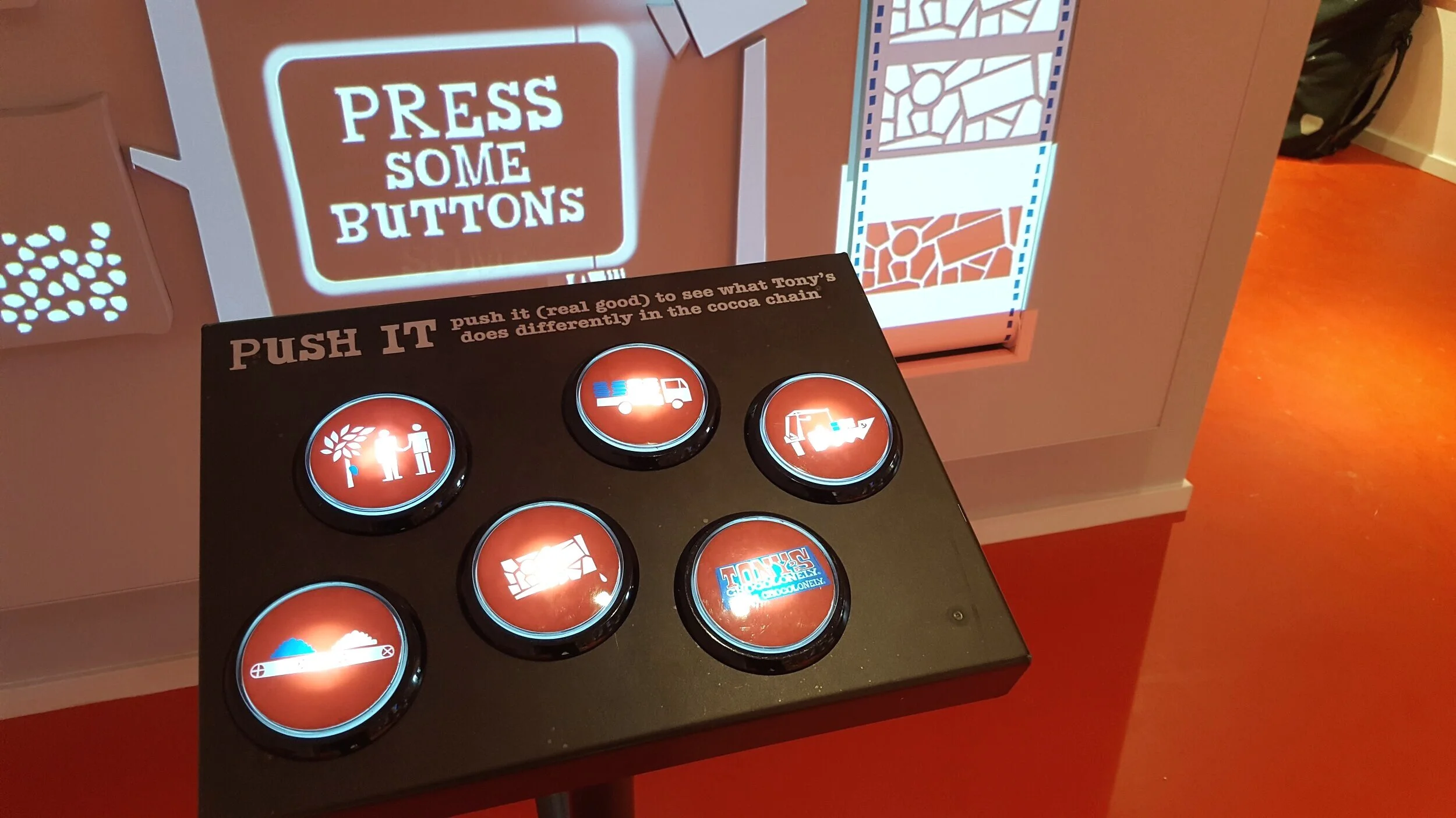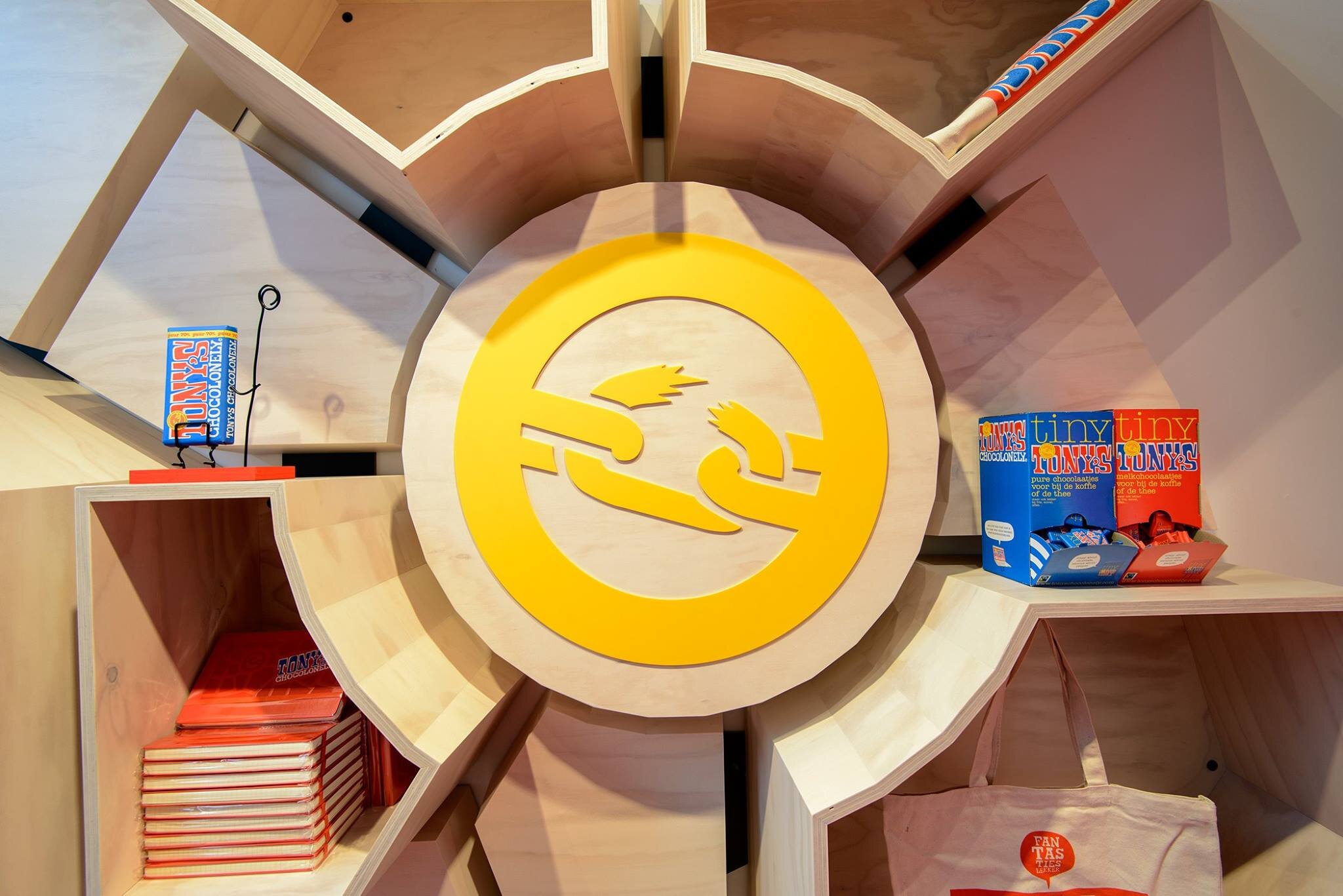 Ook was ik verantwoordelijk voor een groot deel van Tony’s superstores in de “Beurs van Berlage”. Zoals de interactieve installaties die het “Bean to bar” verhaal vertellen. Deze bevat zowel bewegende onderdelen als projection mapping (techniek waarbij je objecten interactief maakt met bamer projecties) om het verhaal op een speelse manier te vertellen.